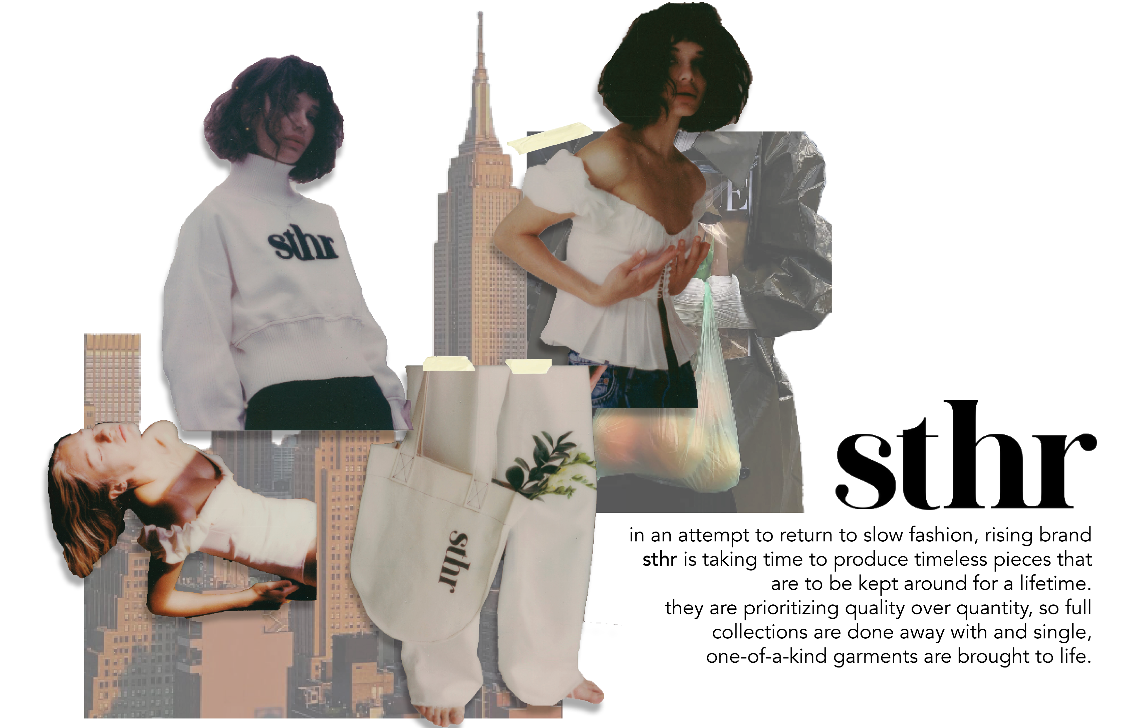 after selecting a brand, i created a new line that was adjacent to their existing pieces but explored a new area for the brand. i selected sthr, a New York-based women's wear brand, and took an androgynous approach to their style.